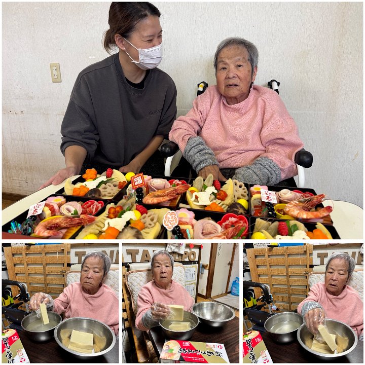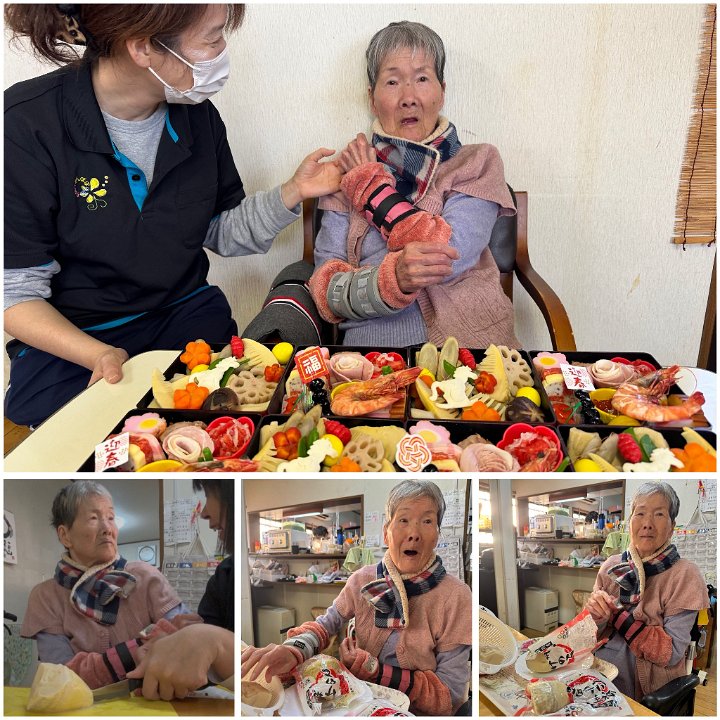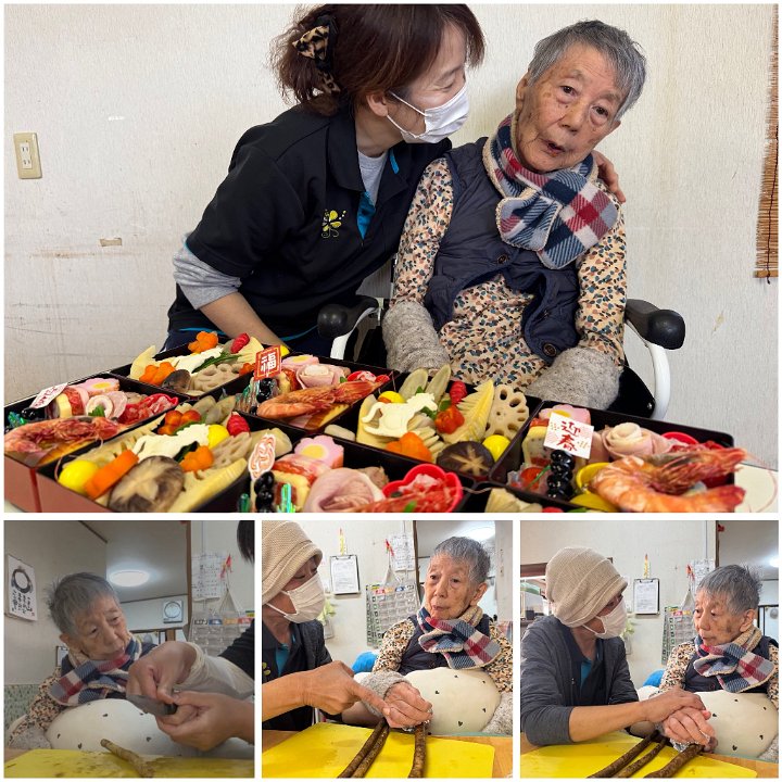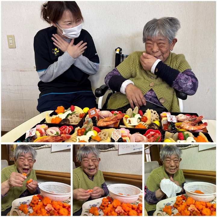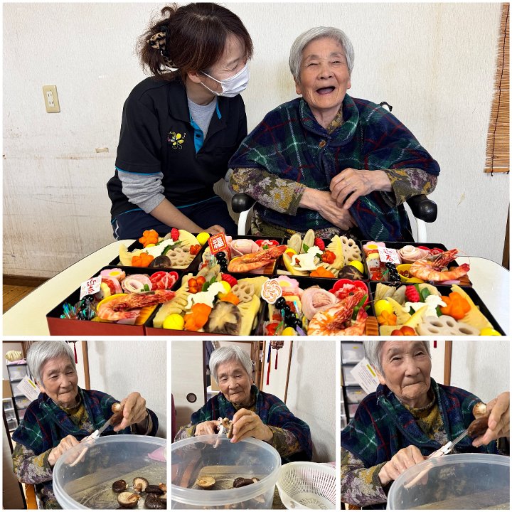 やすらぎのさとも、朝夕とみんなで作ったおせち料理とお雑煮を堪能しています。