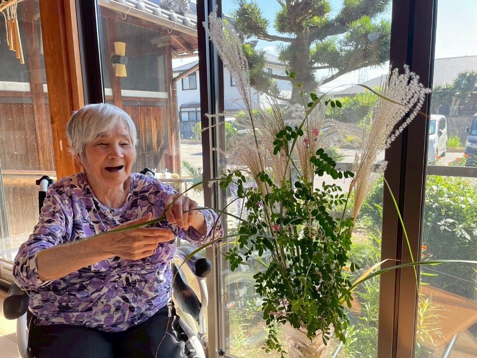 ご家族さまが、ススキと萩を持ってきてくださいました。