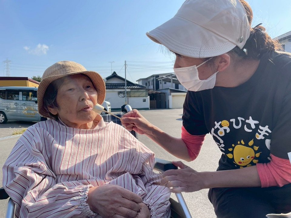 焼き芋を焼いている火で、焼きマシュマロを楽しんだ入居者さまでした。
