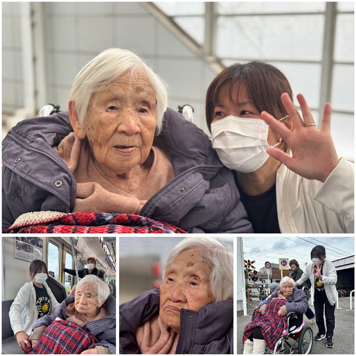 やすらぎのさとを出発いたしました。道中は、今この時の季節を感じていただきたく😊