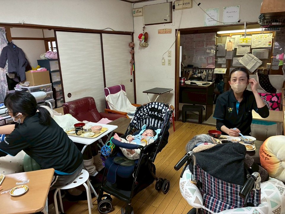 ベビーカーだったり、入居者さまに抱っこされたり、スタッフに抱っこされたり…