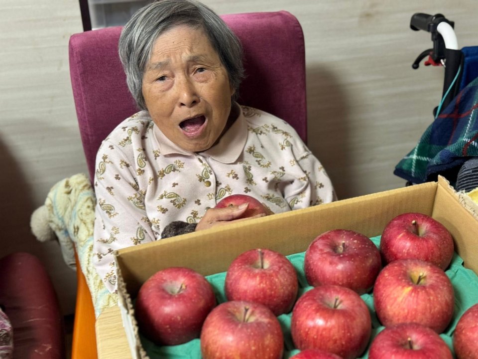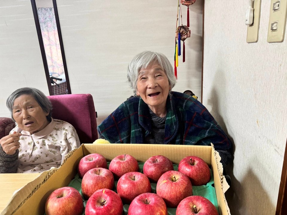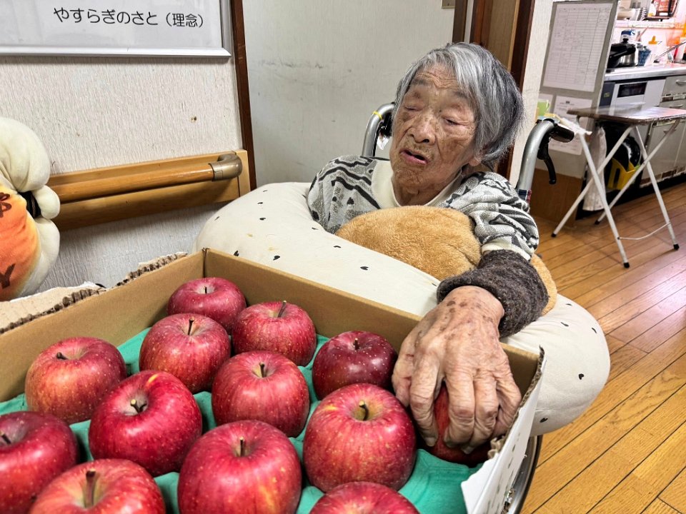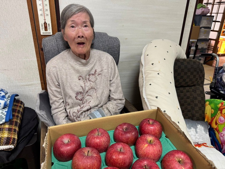 りんごの香りで、自らたって、りんごの置いているところに行く入居者さまも😆