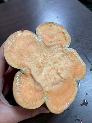 そんなご家族さまが、家庭菜園で取れた大きなサツマイモを持ってきてくださいました。切ってみると、素敵なお花が顔を出してくれました🌸