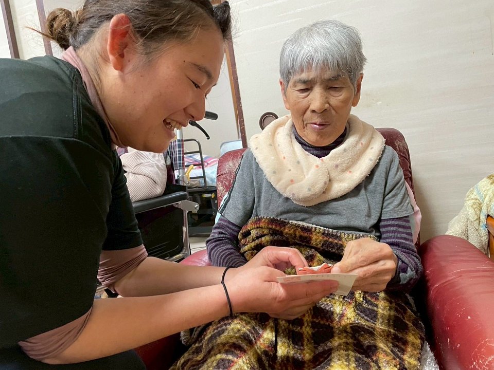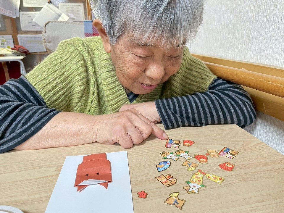ゆっくりゆっくり時間をかけて、お休みのスタッフが、おばあちゃんと大切な時間を育むように、大切な方へ愛情たっぷり手作りの年賀状を送ります。
