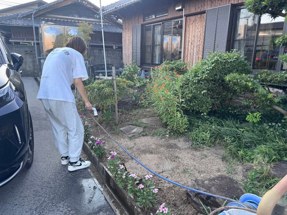 夕方、スタッフの娘さんが、夜食を持って来てくれて、なおかつ、草木の水やりをしてくださいました。