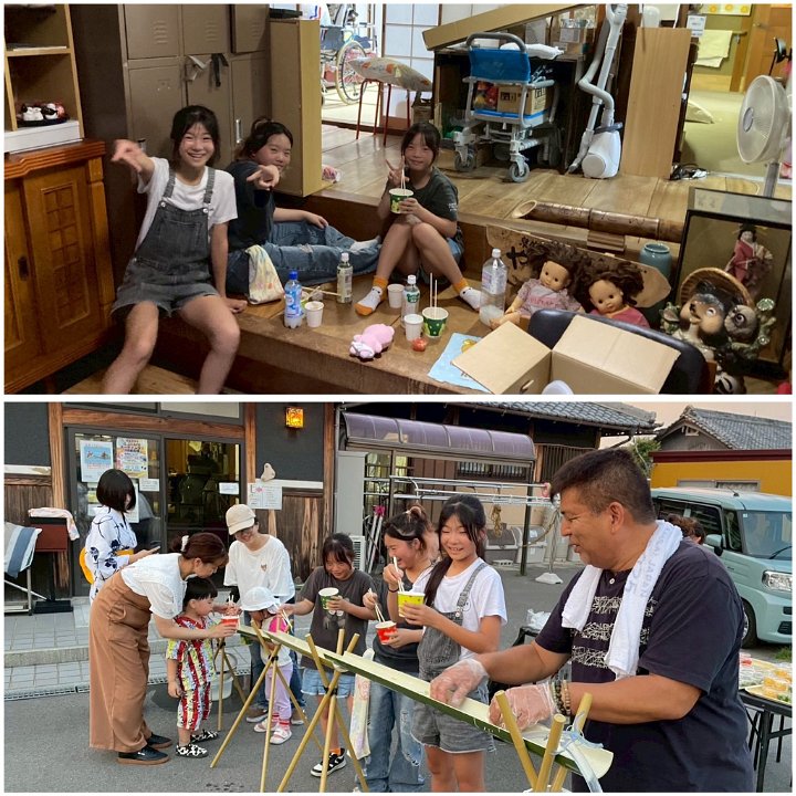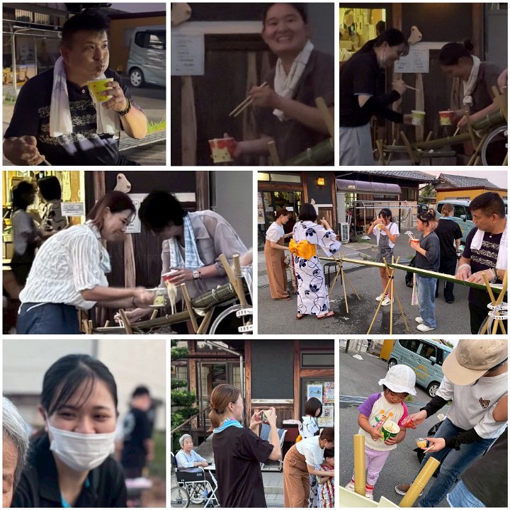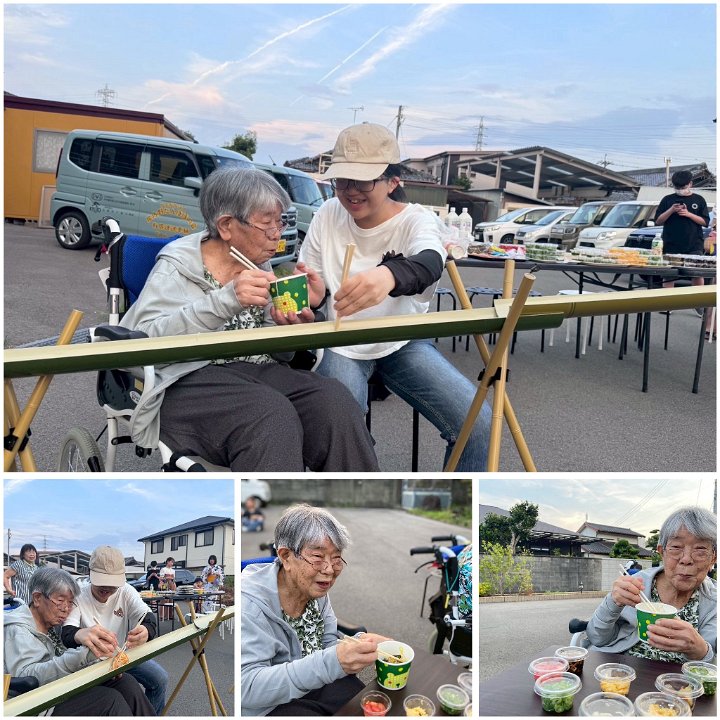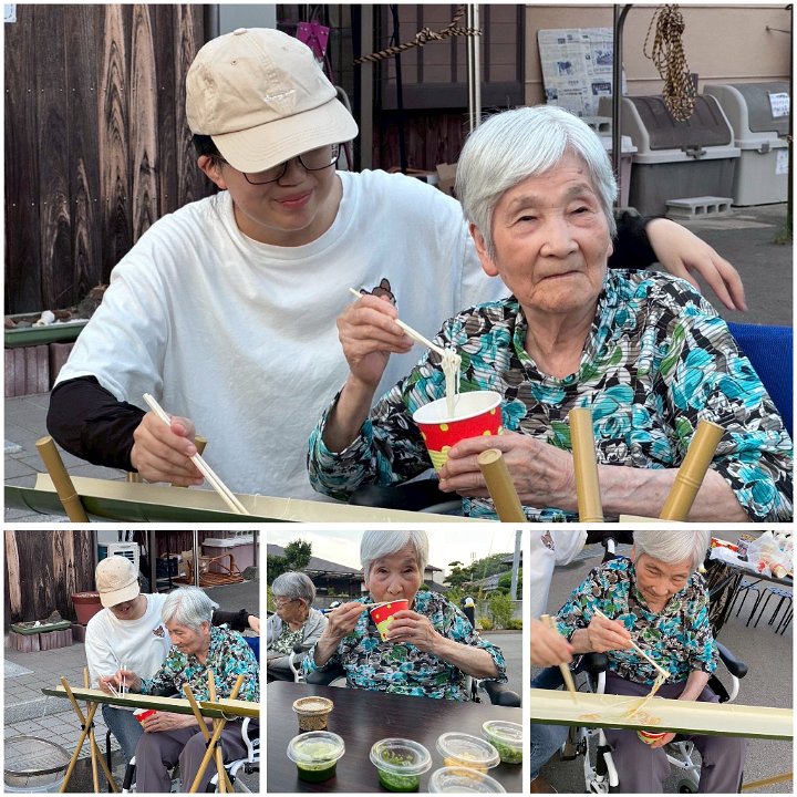 大家族の流しそうめん。これもまた、夏の風物詩ですね。