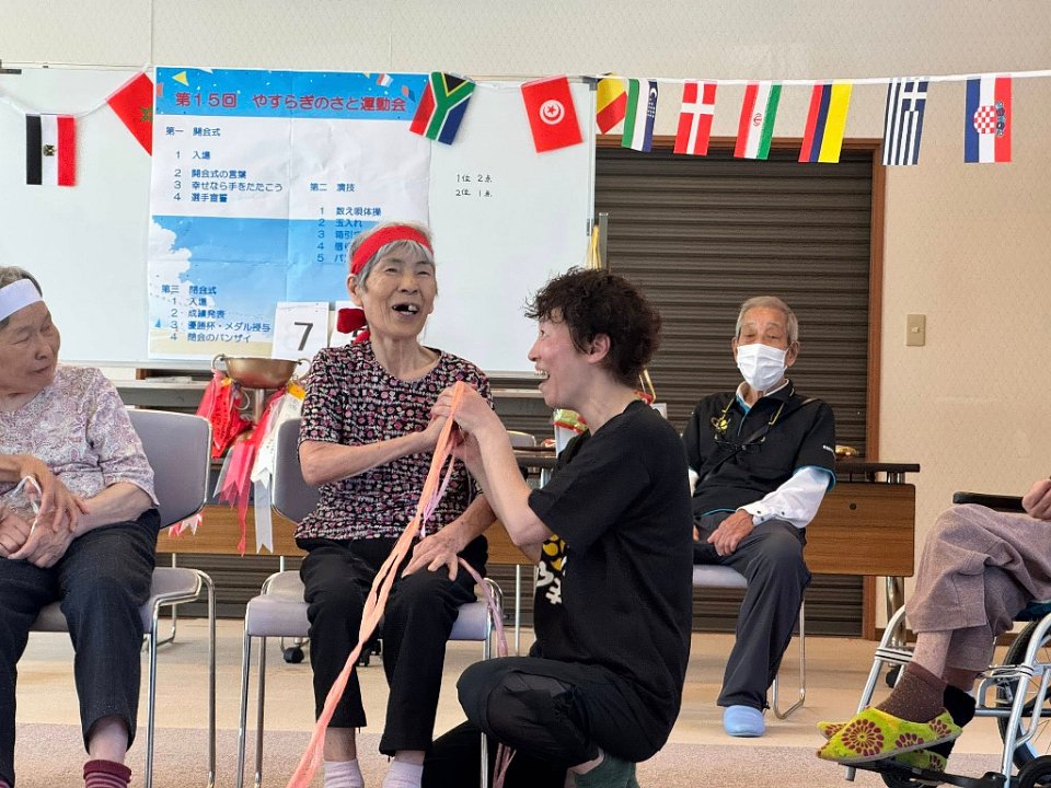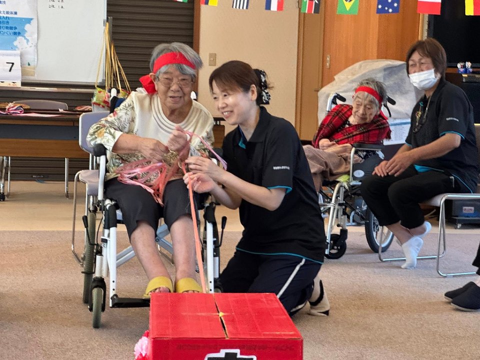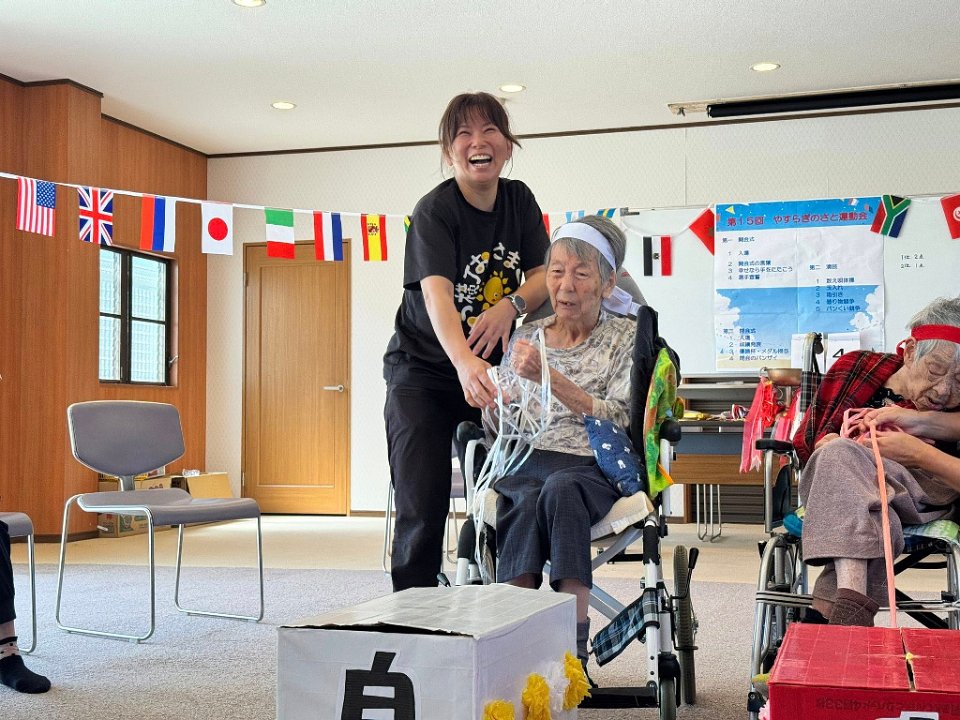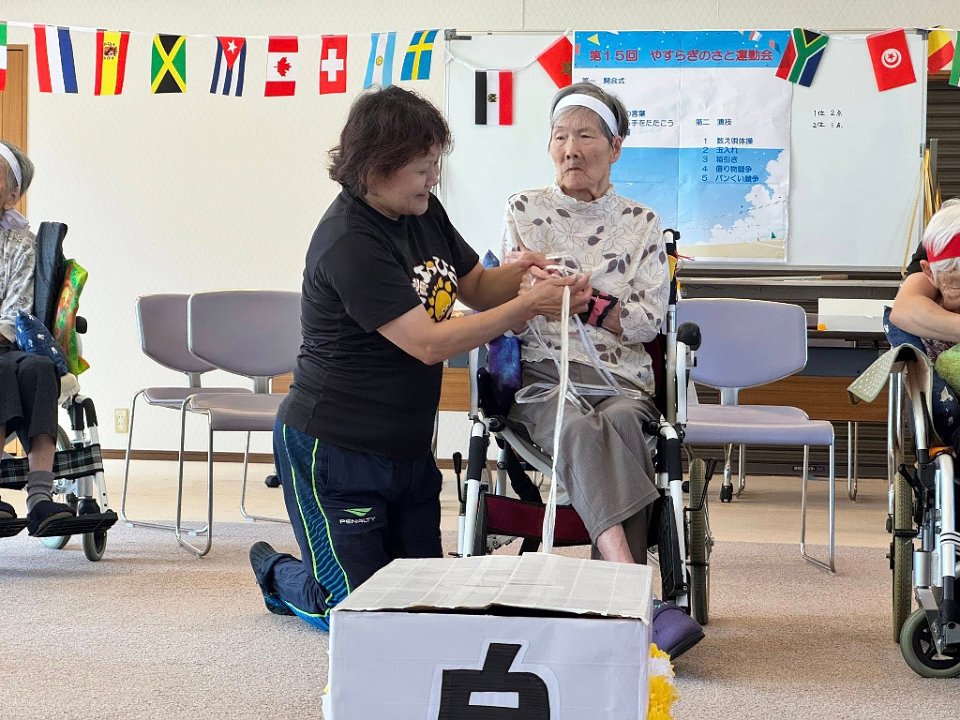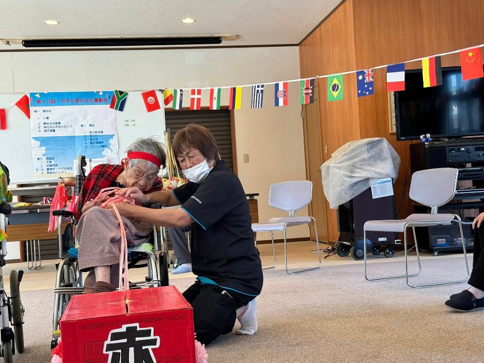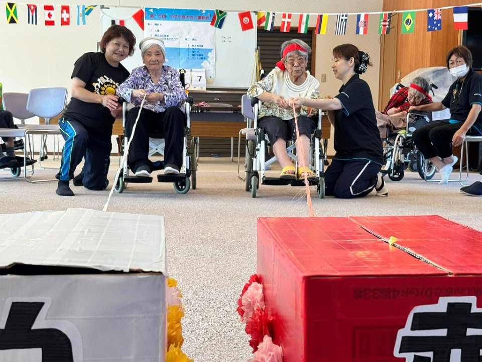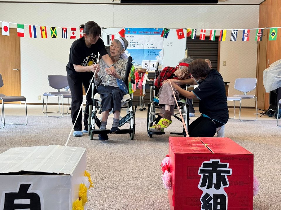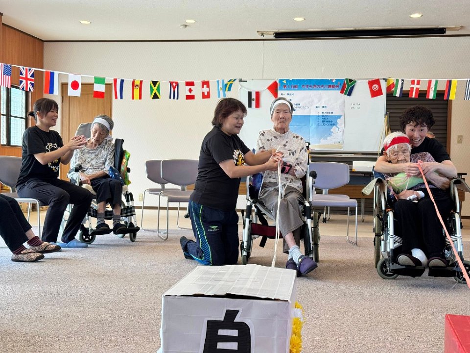 スタッフと助け合って、ゆっくりでも、できる限り、入居者さまのチカラを出していただく競技になりました。