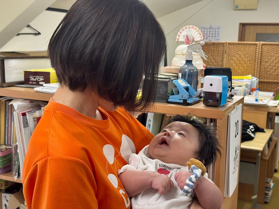 今日から、スタッフが赤ちゃんと一緒に勤務してくださることになりました。