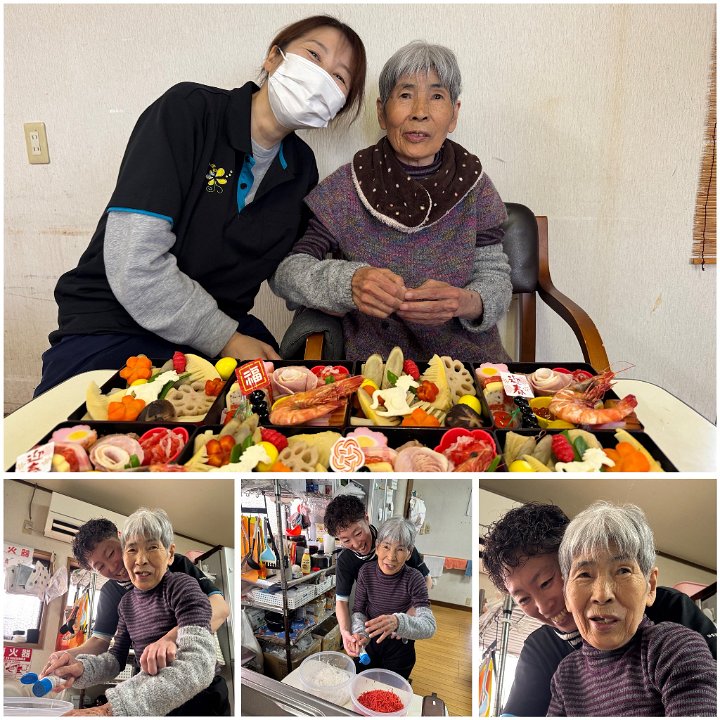 やすらぎのさとも、朝夕とみんなで作ったおせち料理とお雑煮を堪能しています。