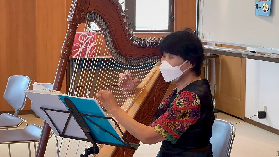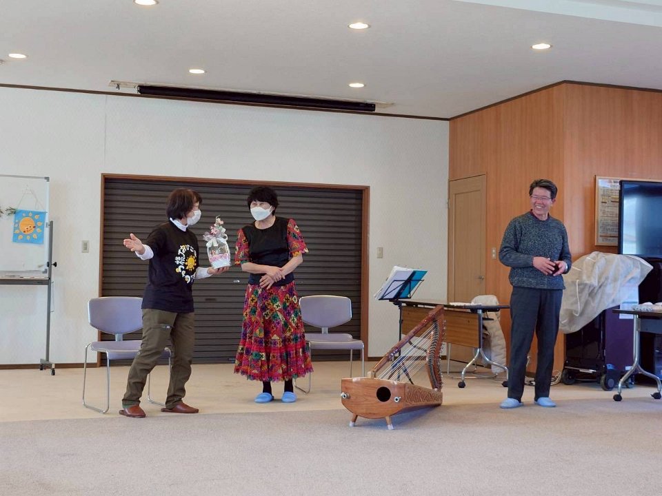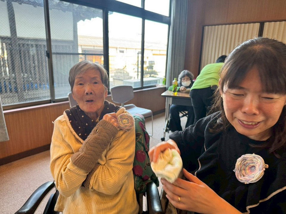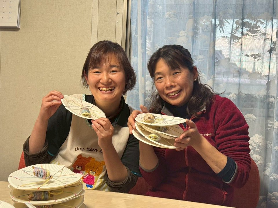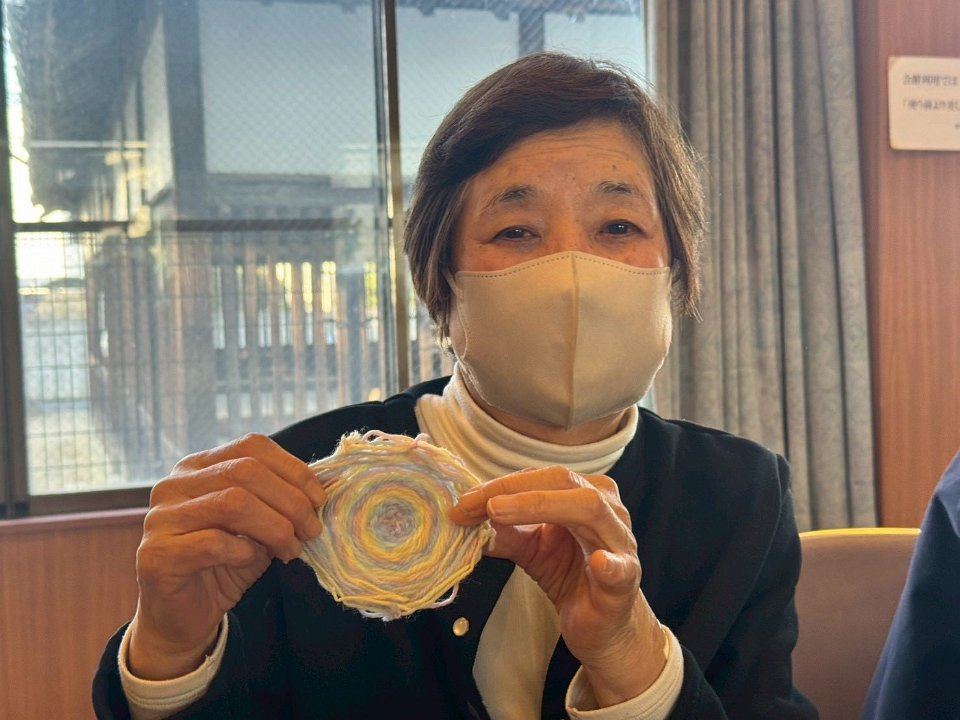 アルパの音楽を楽しみ、毛糸でコースターを作りました。