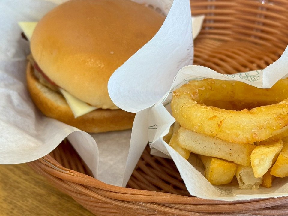 チーズバーガーオニポテセット🍔そして、カフェラテ