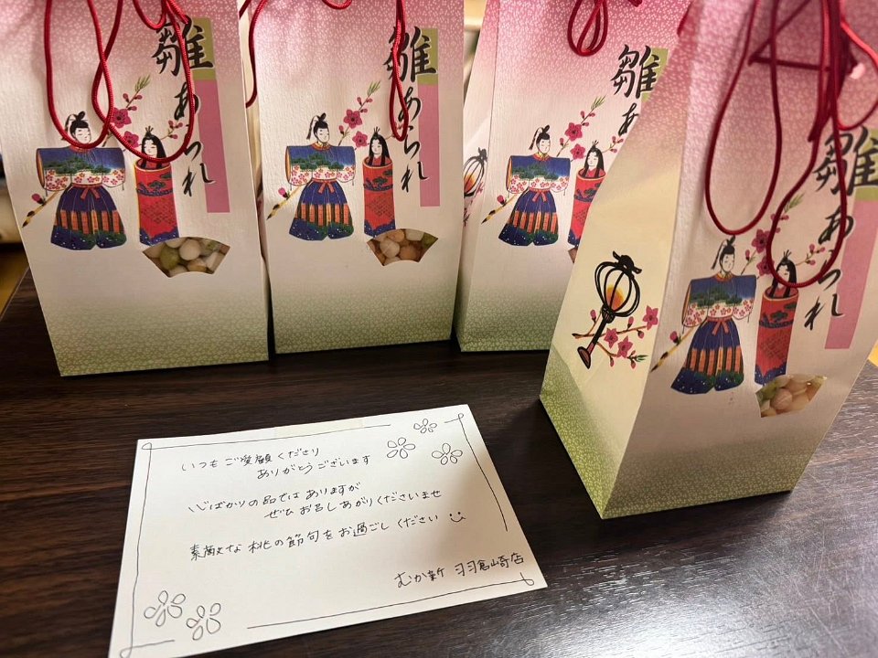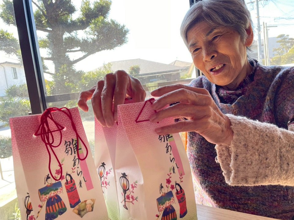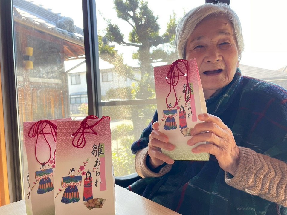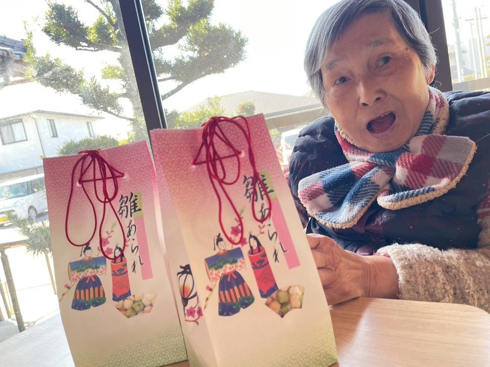 むか新さんより、入居者さまへ、可愛い可愛いひなあられをいただきました🥰🙏