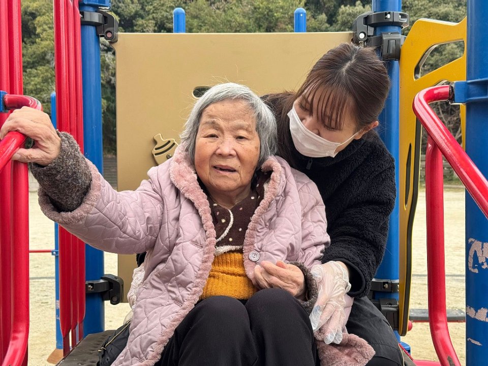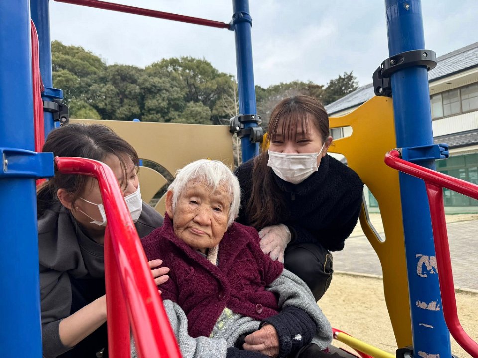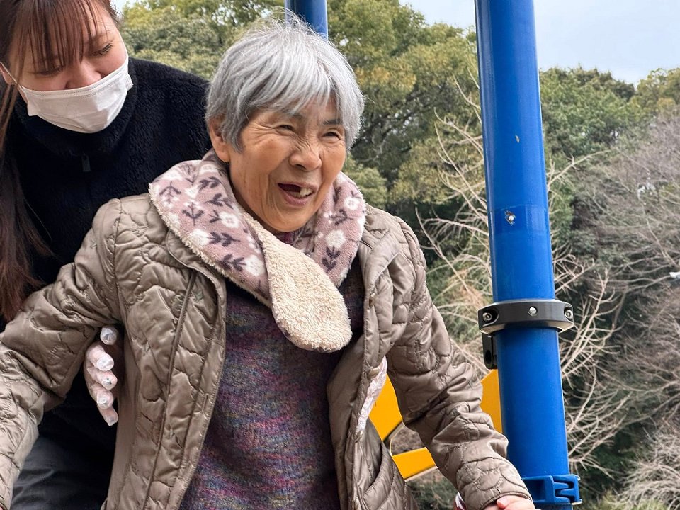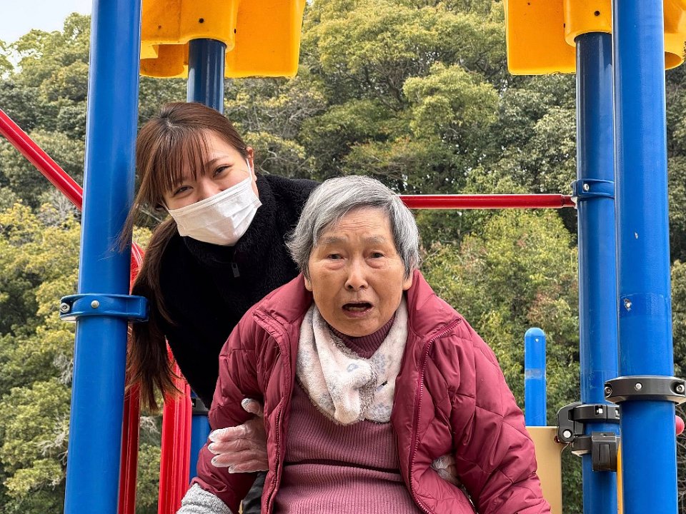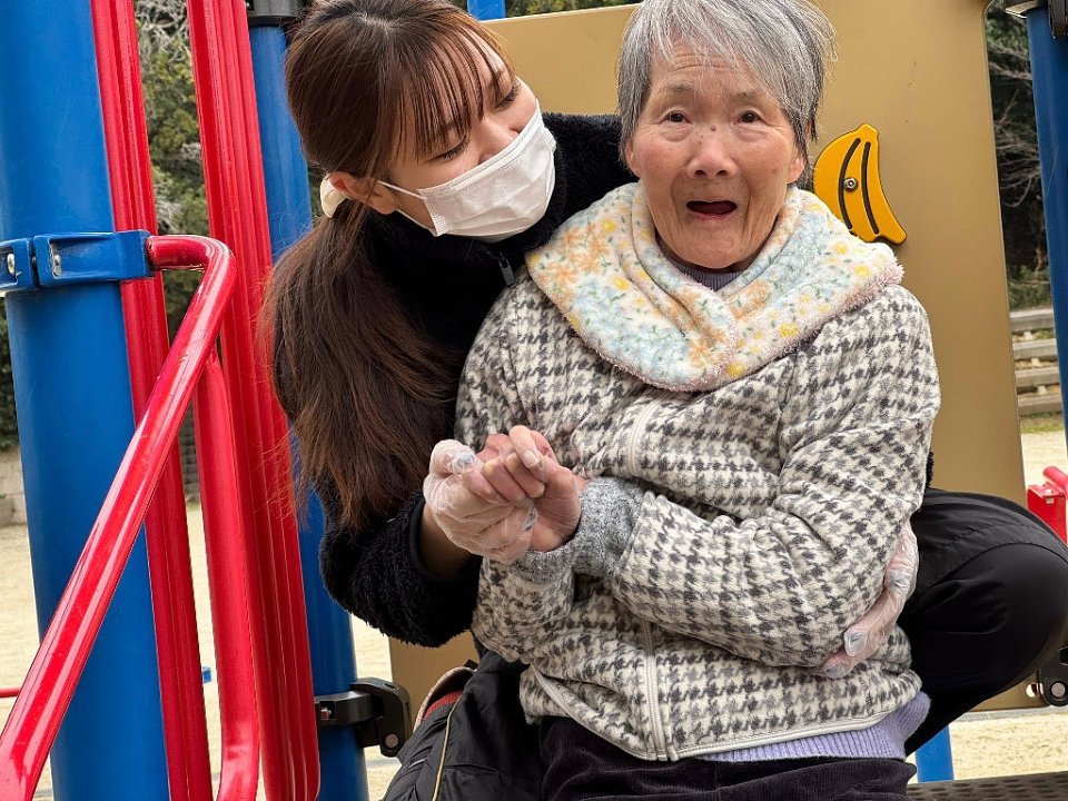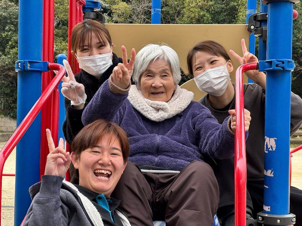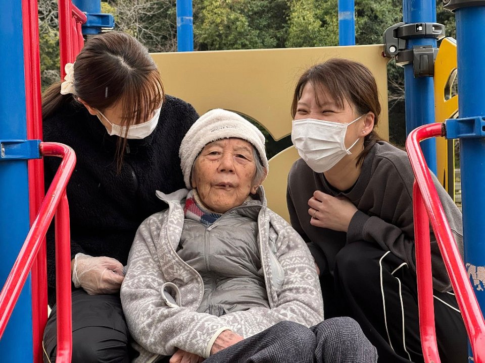 すべり台をすべろうよ!そんなことを入居者さまと話していると…