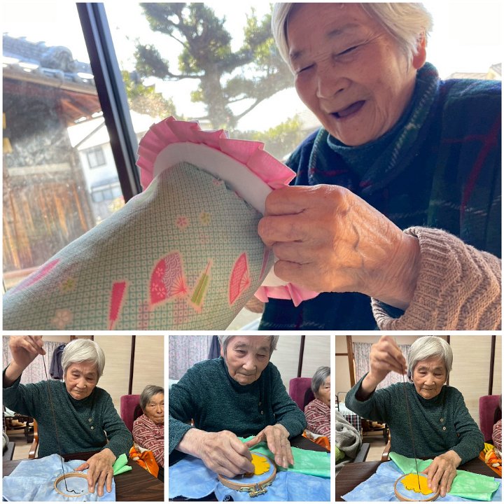 昨年の法人の評議員会で、ぜひ、また、岡本まで繋いで欲しいというご意見をいただき、今年は、入居者さまと、まくら制作に関わらせていただくことになりました。